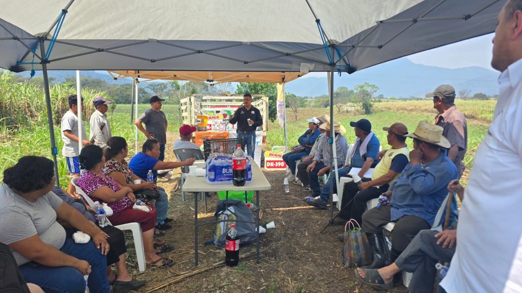 Durante la actividad también participó la Casa de Agroquímicos San Juan, representada por el Ing. José Luis Salinas, quien brindó asesoría técnica a productores sobre el manejo adecuado y la correcta aplicación de productos químicos en el cultivo de caña de azúcar, con el propósito de mejorar el rendimiento y el manejo agronómico de este importante cultivo en la región.