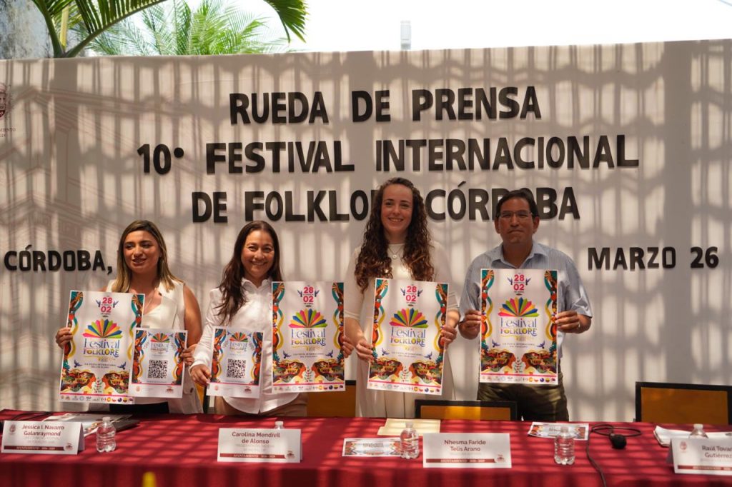 Córdoba, Ver., 26 de marzo del 2026.- La décima edición del Festival Internacional de Folklore (FIF) se encuentra lista, y este jueves en rueda de prensa se conocieron mayores detalles de un evento lleno de color, magia, música y cultura; cinco delegaciones extranjeras estarán presentes, y además de las presentaciones nacionales y foráneas, habrá talleres, desfiles, encuentros de músicos, foros, y muestras gastronómicas, todo del 28 de marzo al 02 de abril del presente año.