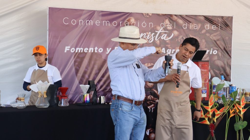 Fortín, Ver. – En el marco de la conmemoración del Día del Barista, la explanada del parque Lázaro Cárdenas del municipio de Fortín, fue sede de una jornada de capacitación técnica que reunió a productores, especialistas y ciudadanos interesados en la cultura del café.