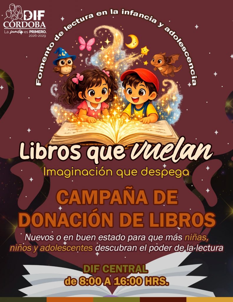 En Córdoba hoy más que nunca se busca despertar los sueños de cada niña y niño. Por ello, el Sistema Municipal DIF te invita a sumarte a la campaña de fomento a la lectura, “Libros que vuelan: imaginación que despega”, una invitación abierta a la ciudadanía para compartir historias que transformen vidas en el marco del mes de la niñez.