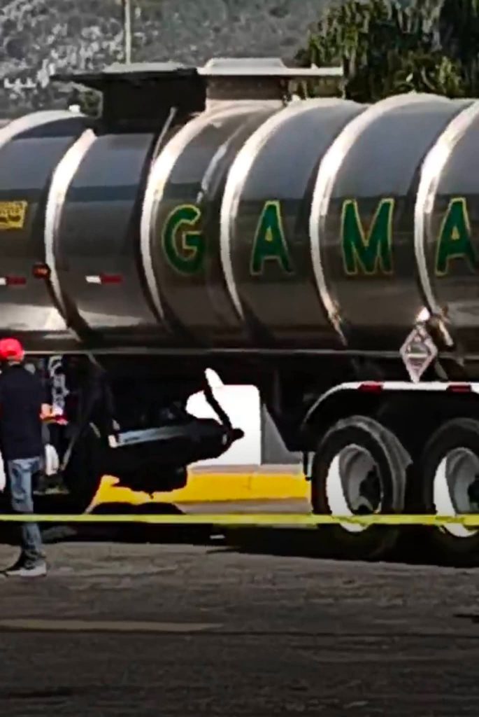 Según la información preliminar, una de las víctimas habría sido privada de la vida de bajo de una pipa de doble remolque cargada con diésel, quedando su cuerpo ahí.