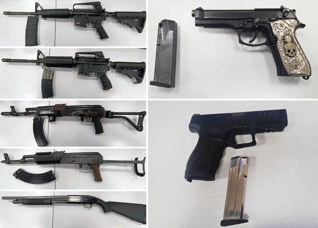 Durante la intervención, las fuerzas de seguridad aseguraron un importante arsenal que incluye dos fusiles de asalto tipo AK-47, un AR-15, un fusil Galil, una escopeta Mossberg, además de dos armas cortas calibre 9 milímetros, cartuchos útiles de distintos calibres y una camioneta GMC con placas del estado de Tamaulipas.