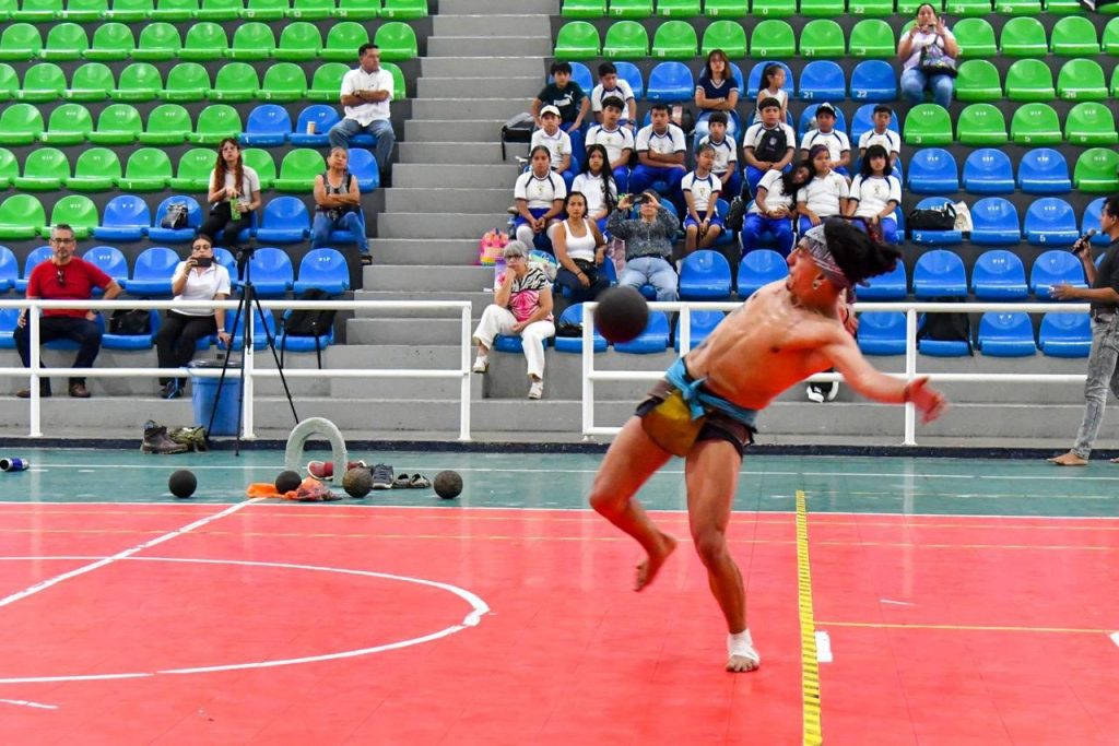 El también llamado Juego de la pelota mesoamericana se jugaba hace miles de años en diversos puntos del país; en la demostración se contó con la participación de cuatro integrantes del equipo Matlactli Cuahutochtli, mismos que en dos sesiones mostraron sus habilidades de una actividad que tiene más de 3500 años de existencia.
