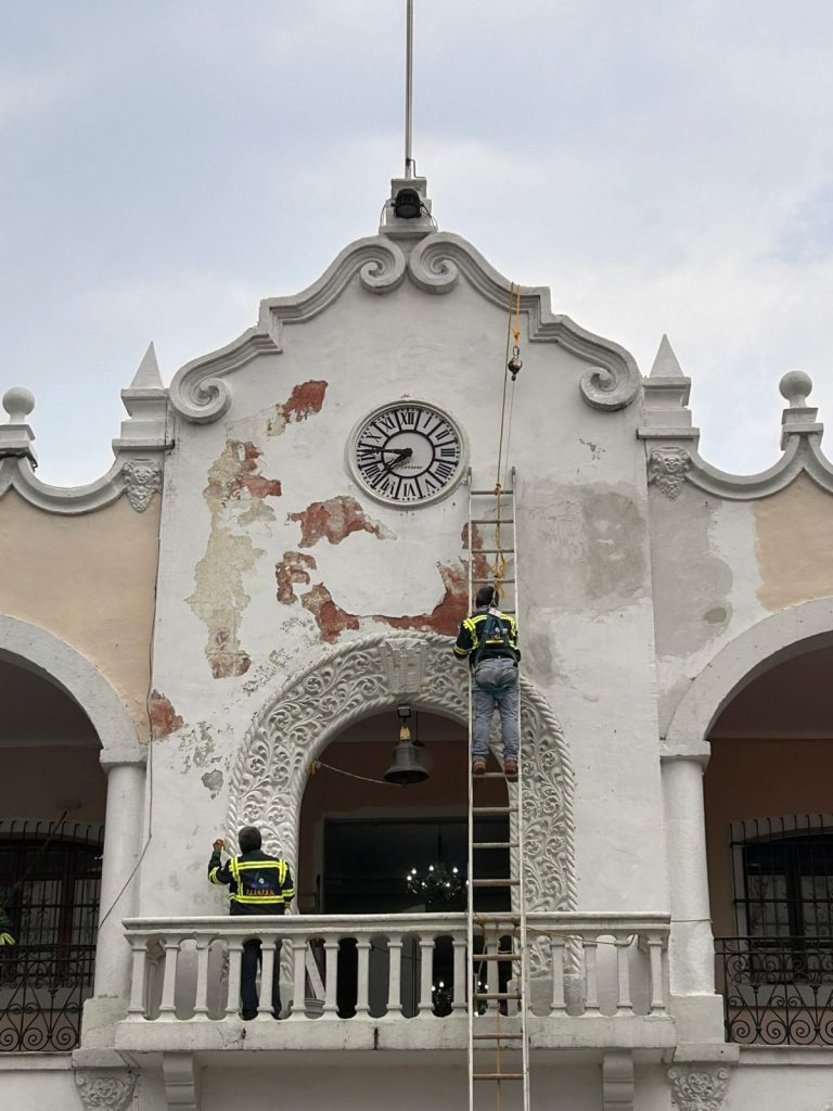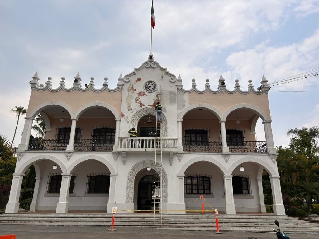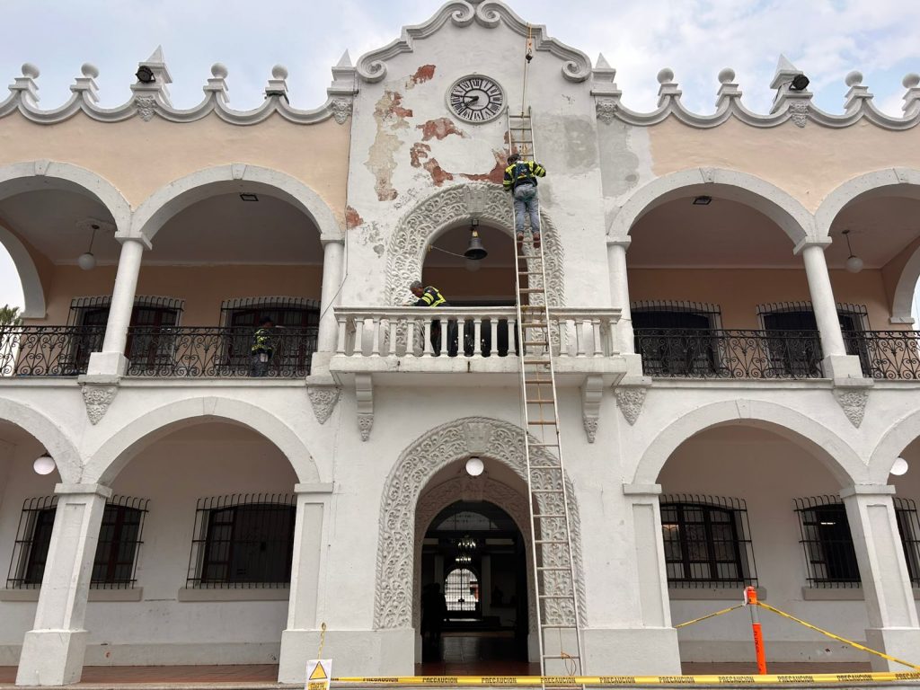El titular de Obras Públicas, Arq. José Luis García García, explicó que las labores comenzaron con el resanado de aplanados y la aplicación de pintura en la fachada principal siendo el color arena y blanco los que destacarán, además del mantenimiento de herrerías y ventanas de madera, que recibirán barniz y tinta para recuperar su aspecto original.