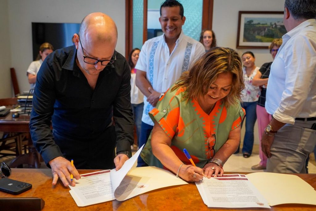Junto a la primera autoridad, estuvieron presentes en la firma los regidores María Ángel Ordinola Camarillo, Glorisel Ixmatlahua, Itzel López González, Nhesma Faride Telis Arano, Claudia Olga de la Huerta Manjarrez, y José Medina Rahme, así como de Ricardo Rincón, jefe de Deporte, Dennis Lira Tosqui, coordinadora de Bienestar Social, y diversos jefes de área.