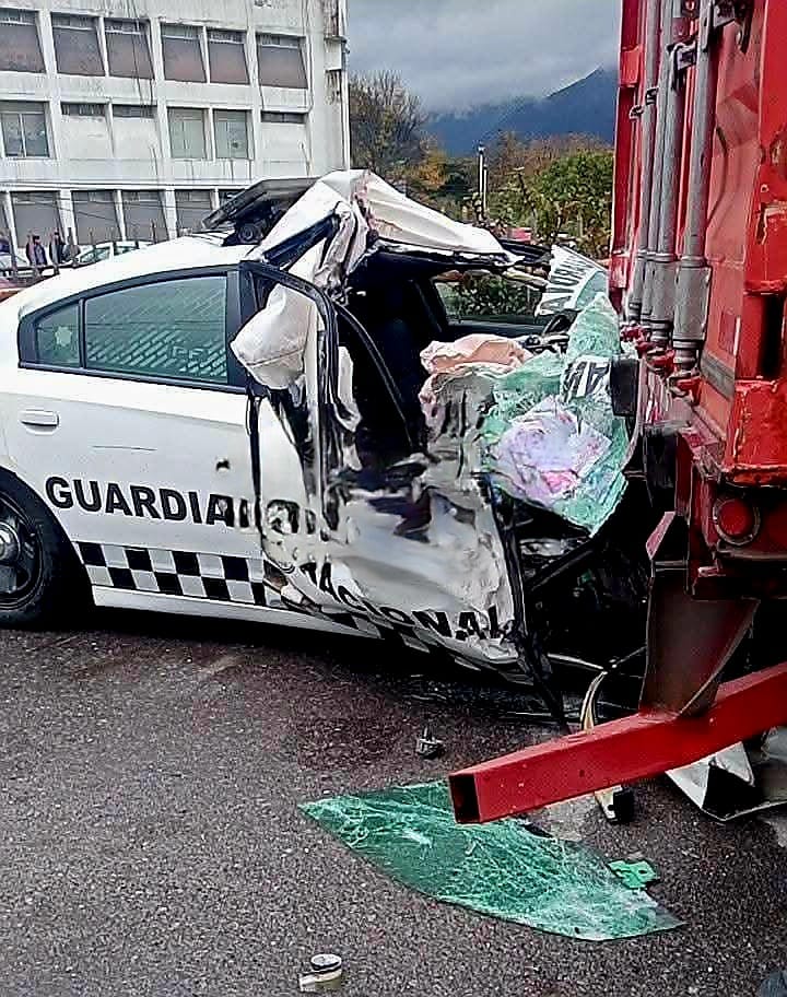 Patrulla de la Guardia Nacional se impacta contra camión frente al hospital de Río Blanco